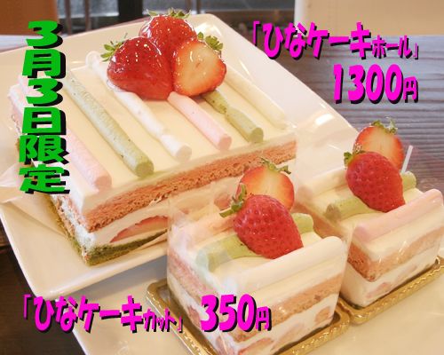 「ひなケーキ」5㎝×5㎝・・・350円(カット)
