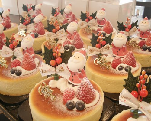 サンタさんがチーズケーキの上で滑っているかの様な遊び心満点のケーキ。