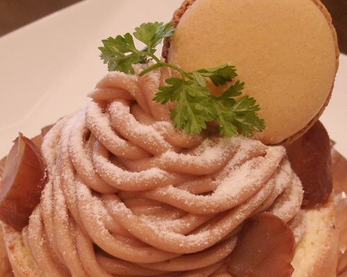 中にあっさりとした甘さ控えめのマロンムースと栗そのものをふんだんに入れて、